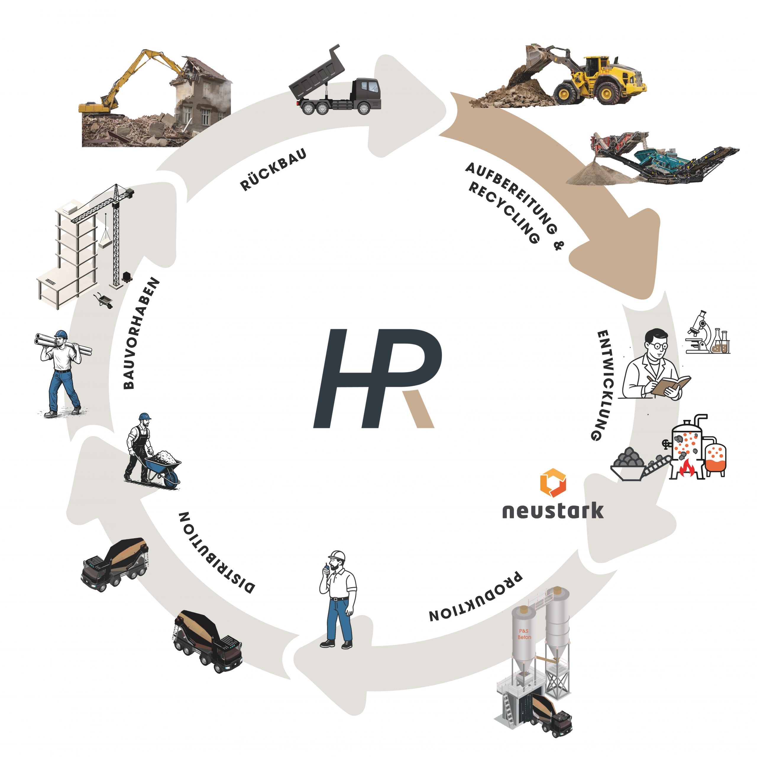 So entstehen hochwertige, sortenreine Granulate aus Beton, Mischabbruch oder Belag, die als geprüfte Recyclingbaustoffe in neuen Bauprojekten eingesetzt werden können.